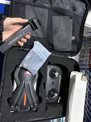 Dron plegable con cámara FPV y motor sin escobillas. - Cámara 1080p - 30 minutos de vuelo - Retención de altitud - Fotografía con gestos - Incluye mando, baterías, hélices y funda de transporte. NUEVO A ESTRENAR, en la caja sin abrir