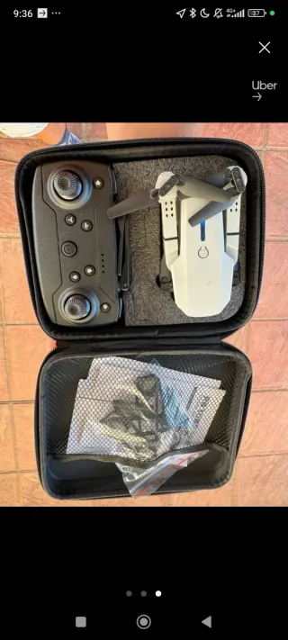 Funda protectora para dron. - Color negro. - Asa de transporte. - equipado con cámara HD Se maneja con el móvil, carga por USB duradera