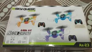Dron de juguete Sky Quest Neon. Disponible en varios colores vibrantes. - Diseño llamativo. - Control remoto incluido. - Ideal para iniciarse en el mundo de los drones.