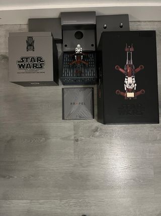 Dron de Star Wars, modelo 74-Z Speeder Bike de Propel. Incluye caja original y accesorios. - Diseño inspirado en Star Wars. - Caja de presentación con licencia oficial. - Incluye figura de piloto. - Base de entrenamiento con diseño de Estrella de la Muerte.