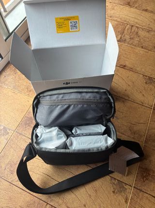 Funda de transporte para el dron DJI Mini 2 Fly More Combo. Diseñada para proteger tu equipo. - Interior con compartimentos moldeados. - Cierre de cremallera. - Asa de mano y correa para hombro. Está totalmente nueva, sin usar. Fue un regalo de reyes y al final hemos devuelto el dron por lo que nos hemos quedado colgados con la bolsa. En tiendas vale 34€. Se vende solo la bolsa, sin el dron no complementos.