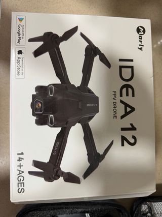 Dron Morly IDEA 12 FPV en color negro. Ideal para iniciarse en el mundo de los drones. - Diseño plegable para fácil transporte. - Cámara FPV integrada. - Control remoto incluido. - Apto para mayores de 14 años. ‼️una helice no gira, no se si es su motor o que esta pillada. De ahi su precio