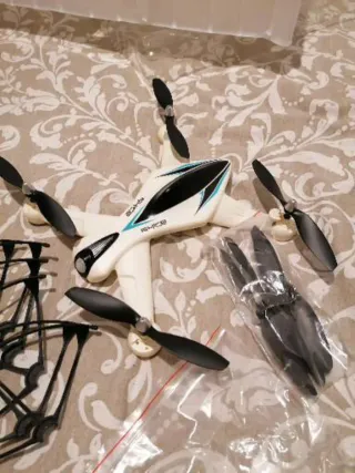 Dron compacto con cámara integrada. Ideal para capturar imágenes y videos desde una perspectiva aérea. - Diseño elegante y moderno. - Fácil de operar. -solo le falta la batería que esta rota la de el dron que es recargable pero no funciona pero lo demas esta como nuevo