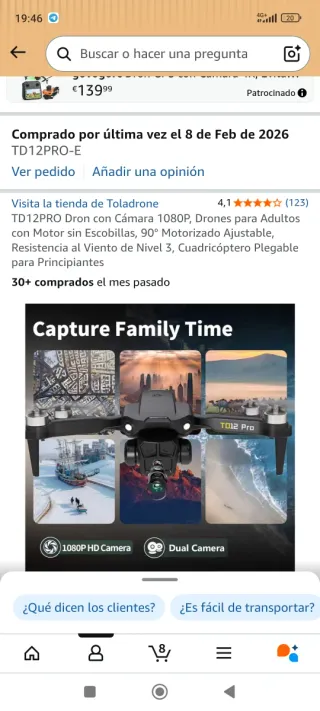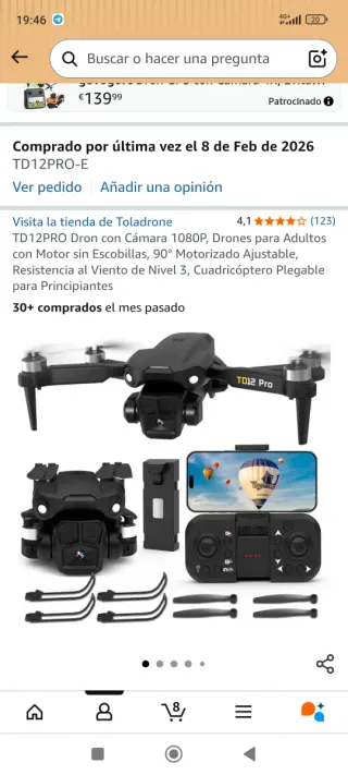 Dron plegable de la serie Bugs con cámara 4K y GPS. - Cámara 4K (3840x2160). - Estabilización EIS. - Vuelo de 50 minutos. - Alcance de 5 km. - Transmisión de imagen 5G. - Control remoto con soporte para móvil. - Motor Brushless. No lo he llegado a estrenar porque no supe encenderlo quizás vino la batería mala Es del año pasado