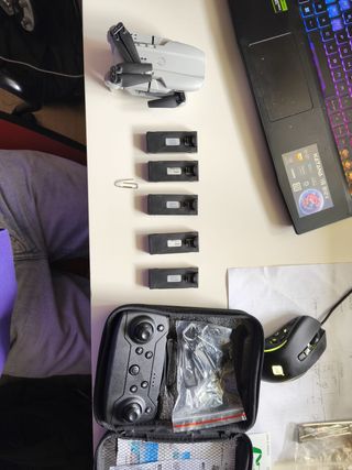 Dron 5G en buen estado, listo para volar. Incluye control remoto y accesorios. - Dron plegable. - Cámara integrada. - 2Batería de larga duración. - Control remoto para ver en movil - Incluye cargador USB y hélices de repuesto.