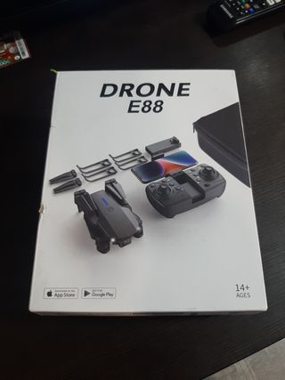 Drone E88 en color negro. NUEVO SIN ABRIR. - Incluye mando a distancia. - Incluye funda de transporte. - Incluye hélices de repuesto.
