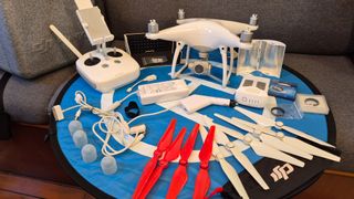 Piezas de repuesto para dron. - Componentes de dron en color blanco y azul.
