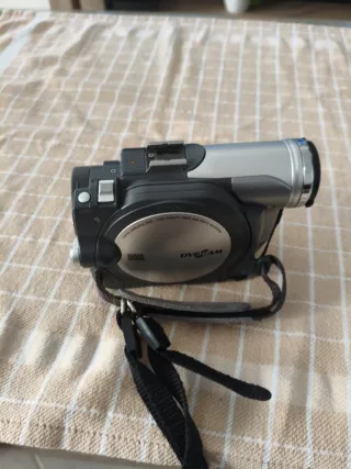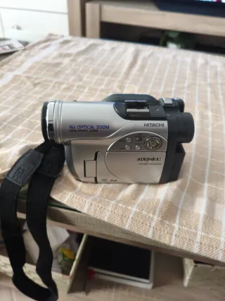 Videocámara Hitachi en color negro y plateado. Ideal para capturar tus recuerdos. - Diseño compacto y ligero. - Correa de mano incluida para un agarre seguro.