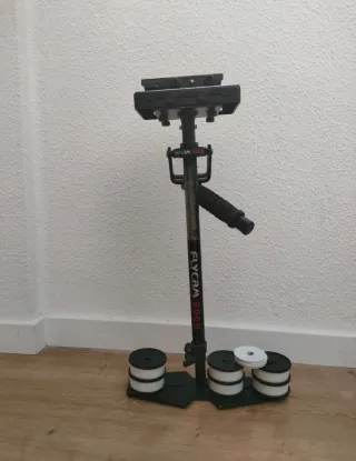 Estabilizador de cámara profesional Flycam 5000. Diseñado para obtener tomas fluidas y estables. - Construcción robusta. - Mango ergonómico. - Base con contrapesos.