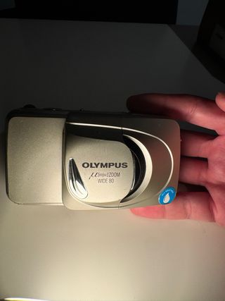 Cámara analógica Olympus Mju Zoom Wide 80. - Diseño compacto y elegante. - Lente zoom. - Resistente a salpicaduras y polvo. Le falta una pequeña pieza al lado de la lente,pero no afecta en nada La cámara esta en perfecto estado