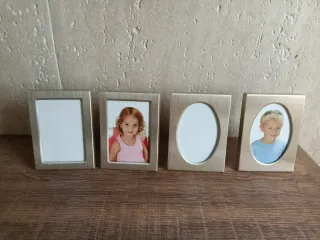 Conjunto de cuatro marcos de fotos pequeño. - Acabado metálico plateado.