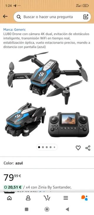 Dron LU80 con cámara 4K dual y evitación de obstáculos inteligente. Ideal para capturar imágenes aéreas con gran calidad. - Transmisión WiFi en tiempo real. - Estabilización óptica. - Vuelo estacionario preciso. - Mando a distancia con pantalla.
