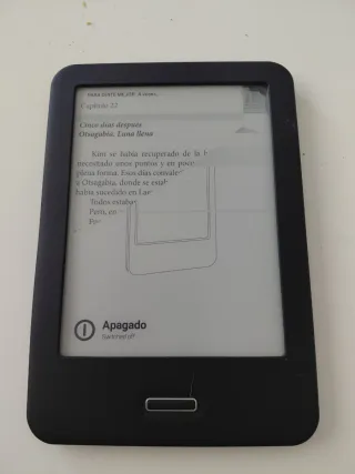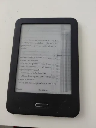 E-reader/e-book Poco uso, comprado hace unos años, incluye un par de libros como las crónicas de Narnia, cargador y funda rígida con agarre para la mano, buen tamaño, opción de diccionario seleccionando las palabras. Precio original sobre los 120 El forro es de 8'5 x 14