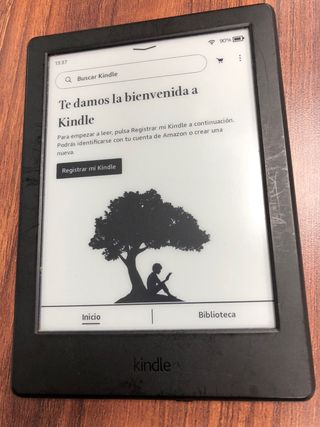 Lector de libros electrónicos en color gris. - Pantalla de tinta electrónica. - Botones de navegación. - Diseño compacto y ligero. Incluye: - Fonda original em buen estado - Cable original para cargarlo Para usarlo debes disponer de una tarjeta SD, ya que no usa wifi, debes usarla para descargar los libros y así poderlos leer en el kindle, todo funciona correctamente y además dispone de varios libros ya descargados y separados por idioma y autores como enseñado en las imágenes de producto.