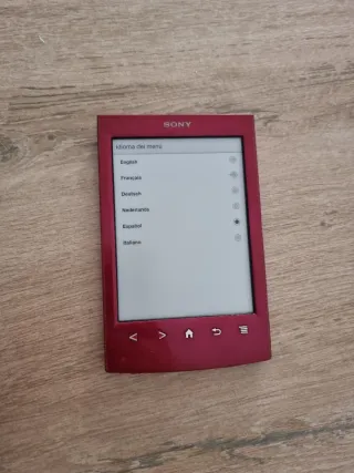 📚 Ebook / e-reader Sony PRS-T2 rojo (con Wi-Fi) Perfecto estado y funcionando genial (solo tiene esas marcas visibles en la parte trasera de la funda). Ligero, cómodo, intuitivo y mucha autonomía de batería! Muchísimo almacenamiento (yo tengo +200 libros y aún sobra espacio), y permite añadir tarjeta SD si quieres ampliar. La pantalla es de tinta electrónica, ideal para leer durante horas sin cansar la vista o al sol. 💡 Incluyo funda de regalo si la quieres (está bastante usada, pero protege bien)!