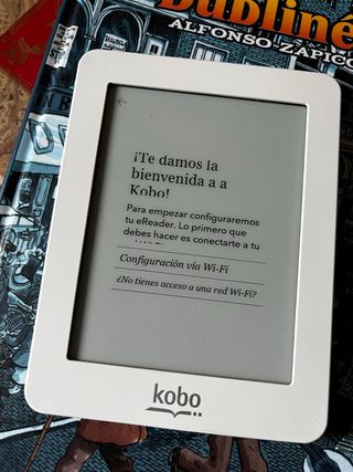 ATENCIÓN, LEER TODO. E-reader Kobo Mini en color blanco. Perfecto para llevar tus libros a todas partes. No consigo conectarlo a la wifi ni al pc, así que no puedo ponerle libros. No sé si es el libro o soy yo. Si eres manitas o para piezas, de ahí el precio.