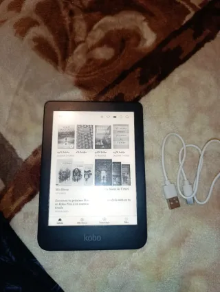 Ereader kobo aura. Funciona bien, y le puedes añadir libros, pero no le funciona el wifi. Yo los libros se los pongo conectandolo al pc por usb