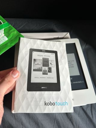 Kobo Touch N905C completamente nuevo a estrenar, comprado en MediaMarkt Viene con la caja original, manual y cable micro USB. Pantalla tinta electrónica táctil de 6”, pesa solo 185g y la batería aguanta aproximadamente un mes de lectura. Ampliable con microSD hasta 32GB. Ideal para leer sin reflejos y sin cansar la vista. (no hacer caso) tinta electrónica táctil alta resolución ebook reader barato madrid kindle alternativa BQ Cervantes energy sistem pocketbook woxter SPC Dickens libro electrónico wifi epub.