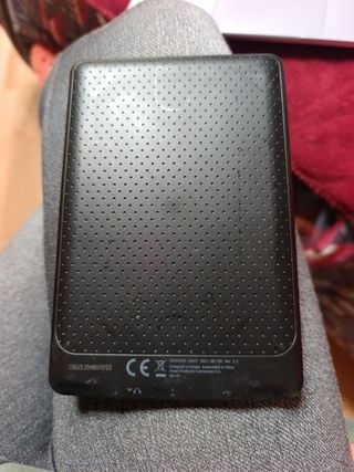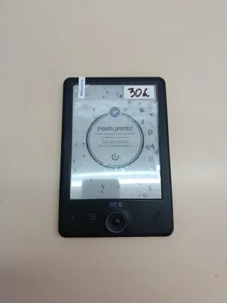 Lector de libros electrónicos (ebook). Alternativa a Kindle. Con caja. Funciona con botones (no es táctil). Tiene luz integrada aunque no es regulable. Está usado, el botón central tiene alguna marca y los botones están algo duros, pero funciona perfectamente. Con tarjeta sd, cargas los libros con el ordenador y a disfrutar. Se carga con cable micro-usb (se da uno corto, de unos 15cm). Se vende por regalo de uno táctil. Sin funda, con caja. No se la duración de la batería. Lo ha estado usando una persona mayor.
