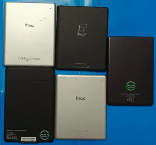 Lote de 5 Libros electrónicos para piezas y/o reparar. Pantalla o táctil mal pero se puede aprovechar el resto de piezas, carcasas, botones, puerto de carga, batería, etc; por lo que no se acepta devolución. * Inves Wibook 650T * Inves Wibook 600T * Tagus Casa del Libro * Fnac BQ 1.0 (2)