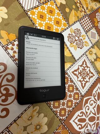E-reader Tagus en color negro. Disfruta de tus lecturas favoritas en cualquier lugar. En buen estado, funciona perfectamente, tactil, con pantalla retroiluminada y antireflejos. - Pantalla de tinta electrónica. - Diseño compacto y ligero. Se hacen envios.