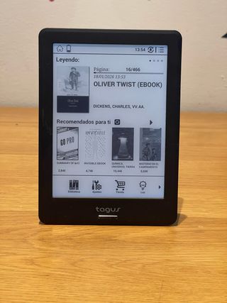 Ebook Tagus en color negro, con muy poco uso. Se vende por este motivo. - Pantalla de tinta electrónica. - Diseño elegante y ligero.