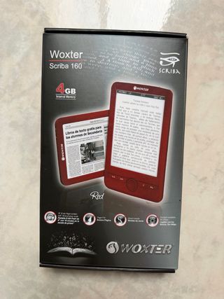 Lector de libros electrónicos Woxter Scriba 195 en color rojo. - Pantalla de tinta electrónica. - Diseño compacto y ligero. - Incluye manual de usuario. Lo único que no tiene caja, pero funciona sin problema y está bien cuidado. A veces se borra el progeso de la lectura