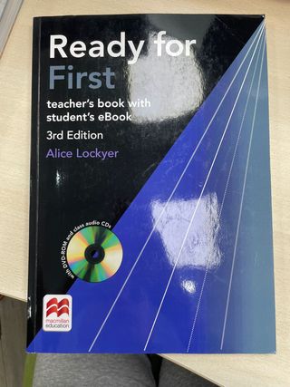 Ready for First Teacher’s Book with Student’s eBook, 3rd Edition, de Macmillan. Curso completo para preparar el Cambridge First (FCE, nivel B2). Incluye claves de todas las actividades del Coursebook, scripts de listening, sugerencias didácticas, modelos de redacciones con comentarios y consejos de examen. El DVD‑ROM aporta fotocopiables, tests en PDF/editables y audios de Workbook y clase. B2/D01