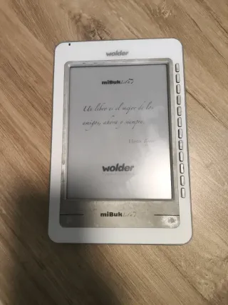 Lector de libros electrónicos Wolder miBuk Life. Un dispositivo compacto y ligero para llevar tus lecturas a todas partes. - Pantalla de tinta electrónica. - Diseño en color blanco y gris. - No tiene luz integrada - Viene con libros cargados - Tiene bastante uso, pero funciona bien
