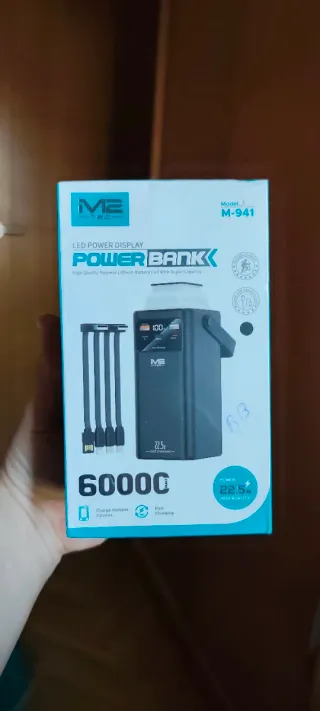 Power bank ME-TEC de alta capacidad con pantalla LED. 😃😃😃Otros modelos en mi perfil 😃😃😃 - Capacidad de 60000mAh. - Carga rápida de 22.5W. - Incluye cables de carga. - Diseño portátil con asa. 💥CARGA TODO TIPO DE APARATOS ELECTRICOS, MOVILES, TABLETS, SMARTWATCH, EBOOK ETC💥💥💥 Se entrega en mano en Leganés calle la rioja Precio no negociable No me desplazo
