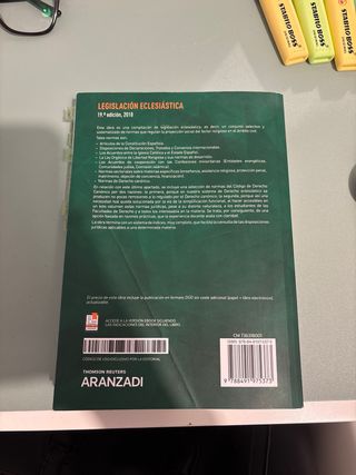 Legislación eclesiástica 19ª edición, 2018 Tiene un par de páginas subrayada a lápiz pero está en perfecto estado. Puedo quitar los post-its.