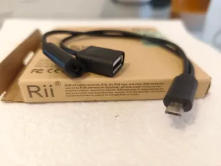 Cable adaptador OTG de la marca Rii, modelo F1, diseñado para Fire TV Stick. Permite conectar dispositivos USB a tu Fire TV. - Conexión Micro USB a USB. - Ideal para ampliar la funcionalidad de tu Fire TV Stick.