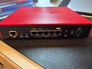 Firewall WatchGuard T40 en color rojo. Licencia de mantenimiento caducada, se puede usar como firewall de pequeña empresa u oficina. - Diseño compacto y moderno. - Indicadores LED frontales para estado y actividad.