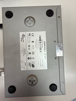 Dispositivo de seguridad de red SonicWall TZ 210. - Diseño compacto y plateado. - Puerto USB/U1 visible en el panel frontal. - Indicadores LED en el panel frontal. Lo dejo con los valores de cada, también se puede reiniciar con los valores de casa. admin password