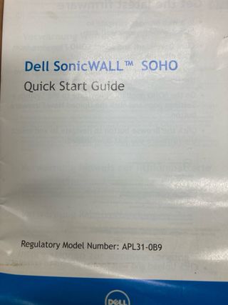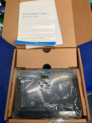 Dispositivo Dell SonicWALL SOHO. - Incluye guía de inicio rápido. - Modelo regulatorio APL31-089.
