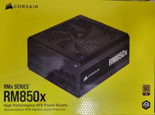 Fuente de alimentación ATX de alto rendimiento. - Modelo: RM850x - Certificación: 80 PLUS Gold - Serie: RMx Cables: - 1 ATX 24-pin - 3 EPS/ATX 12V 8-pin (4+4) - 2 PCI-E 8-pin (6+2) - 1 perifericos 4-pin - 2 SATA (x3 SATA) - 1 SATA (x4 SATA) (Falta 1) Comprado en 2023 casi sin uso.