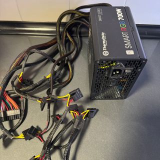 Fuente Thermaltake Smart RGB de 700W, en muy buen estado y totalmente funcional. Ideal para equipos gaming o de alto rendimiento. Cuenta con iluminación RGB integrada y botón físico de control directo. Especificaciones técnicas: • Marca: Thermaltake • Modelo: Smart RGB 700W (SPR-0700NHSAW) • Serie: Smart Series • Potencia total: 700W reales • Certificación: 80 Plus White (230V EU) • Ventilador silencioso de 120 mm con iluminación RGB • Selector físico RGB Lighting • Conectores: – 1 × ATX 24 pines – 1 × CPU 8 pines (4+4) – 2 × PCI-E 6+2 pines – 6 × SATA – 3 × Molex • Voltaje entrada: 230V / 9A máx / 50–60Hz