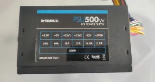 Fuente de alimentación ATX de 500W. - Modelo: BM-PS01 - Potencia: 500W - Voltajes: +3.3V, +5V, +12V1, +12V2, -12V, +5VSB