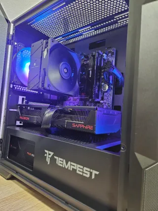 Potente PC para gaming pero ajustando precio al máximo!! Diseñado para 1440P,pero muy solvente en 4k,siendo similar a lo que esperamos de la PS6 y destrozado PS5! Esta recien montado,con mas de dos años de garantía por delante. No hace apenas ruido incluso en carga y se mantiene sobre 60° con los ventiladores de stock... ⚙️ryzen 7 5700X 8nucleos 16hilos. ⚙️B550m gaming wifi6 y Bluetooth. ⚙️1×16GB RAM 3200mts (32GB 2X16 CON RGB CORSAIR +130) ⚙️1TB SSD MNVE +7000MBS. ⚙️Caja y fuente ATX3.1 TEMPEST GAMING. 🛠incluye montaje,instalación y activación de Windows OEM,disipador de CPU. Se entregan cajas y accesorios.