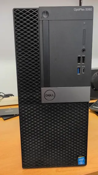 Ordenador de sobremesa Dell OptiPlex 5060 en color negro y gris. Cpu: I7 8500 Ram: 16Gb samsung SSD: 250Gb Kinstong Dispone de dos ranuras M.2 El pc se le quito la fuente de alimentación para rescatar a otro equipo pero el pc funciona perfectamente solo con ponerle su fuente cuya referencia esta en la última foto y que se puede encontrar en alixpress por unos 25€. Solo tiene un puerto frontal roto como se ve en la foto los demás funcionan perfectamente. Tiene muy pocas horas de uso. Se le puede incorporar una gtx 1050 2Gb perfil bajo por 45€ más.