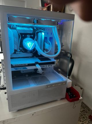 Ordenador de sobremesa gamer Placa base: Asus Rog strix B550A Gaming Ram: 16 Rgb Kingston Fury beast 3200mHz Fuente: Cooler Master 650w certificada Disco: Fanxiang 1TB Y un Toshiba de 300Gb Grafica:RTX4060 AERO Oc 8gb Prosador: Ryzen 7 5700x Refrigeración liquida MSI MAG 240R V2 CAJA HUMMER VISION WHITE Todo el RGB es configurable al gusto, no tiene ni 3 meses uso , se uso para jugar ARK nada mas. Precio negociable, de regalo teclado mecanico