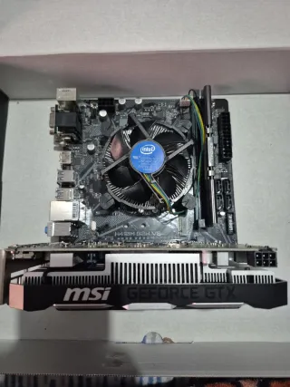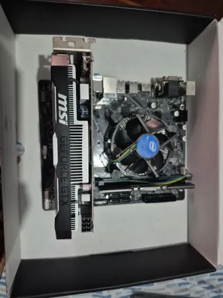 Vendo PC todo probado y funcionando, listo para montar en tu caja (cage). Componentes incluidos: Intel i5‑10400F con disipador original Placa base H410M Tarjeta gráfica NVIDIA GTX 1650 4GB Memoria RAM 16GB ( T-force- vulkanz 3200 MHz Detalles importantes: Todo ensamblado y testeado, funciona perfecto Solo falta caja / fuente / ventiladores No incluye cajas originales de los componentes Ideal para completar con tu propia torre y fuente 💡 Perfecto para quien quiere un PC funcional de 1080p sin tener que montar los componentes uno a uno.