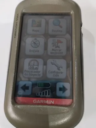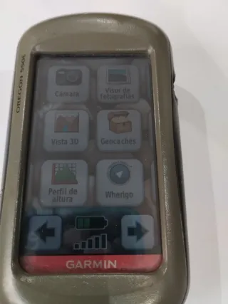Vendo dispositivo GPS Garmin Oregon 550T. Muy buen estado. Varios arañazos en la carcasa que no influye en nada. Botón de apagado/ encendido para reparar, con algún tipo de pincho lo puedes apagar y encender. Fácil reparación, sobre 10€ hay un usuario de wallapop que vende el botón con su pegamento especial para que no se cuele el agua. Pantalla táctil. Diseño robusto. Incluye mapa.Brújula. Marcador de waypoint. Procesador de trayecto. Configuración. Indicador de batería.Indicador de señal. Alimentación mediante dos pilas AA. Se incluye soporte manillar para bicicleta y cable para transferir datos. Pilas no incluidas