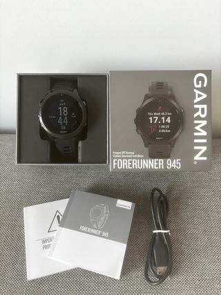 Reloj inteligente Garmin Forerunner 945 Premium GPS Running /Triatlon Smartwatch with Music En excelente estado, impecable, prácticamente nuevo con muy poco uso Funciona perfectamente. Correa de silicona original nueva sin usar - Incluye caja original - Manual de instrucciones - Cable de carga USB