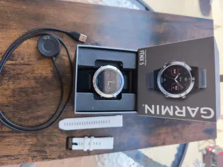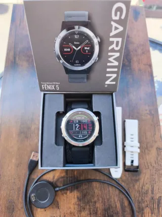 Reloj inteligente Garmin Fenix 5 con GPS. Un dispositivo versátil para tus actividades. - Color: Negro y plateado. - Incluye cargador y correa adicional blanca. Se envía video a través de WhatsApp para poder ver con más detalle el perfecto estado y funcionamiento..