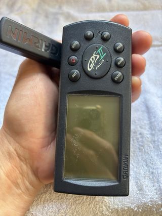 Dispositivo GPS Garmin GPS II PLUS con antena. - Pantalla LCD. - Botones de navegación: QUIT, GOTO, IN, OUT, ENTER, MARK, PAGE. - Antena Garmin integrada.