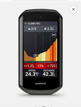 Dispositivo GPS Garmin Edge 1050. - Pantalla a color. - Función Climb Pro. - Muestra velocidad y distancia.