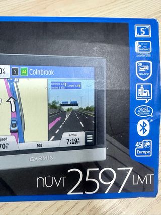Navegador GPS Garmin nüvi 2597LMT con pantalla de 5 pulgadas. - Mapas de Europa incluidos. - Actualizaciones gratuitas de mapas y tráfico de por vida (LMT). - Función de tráfico en tiempo real. - Navegación activada por voz. - Indicaciones de carril avanzadas y vista de cruces.