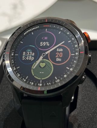 Reloj GPS Garmin Approach S62 para golf. Diseñado para ofrecer datos precisos en el campo. Con su caja original, cable original y correa negra original sin estrenar. - Pantalla a color. - Diseño elegante y deportivo. - Correa cómoda para uso prolongado. La correa está sin estrenar, porque he usado otra correa. Buen regalo de Navidad.