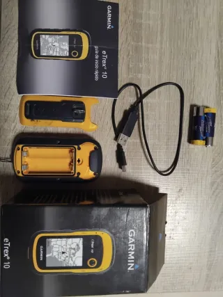 Dispositivo GPS Garmin eTrex 10. - Incluye manual de inicio rápido. - Cable USB. - Compartimento para pilas.